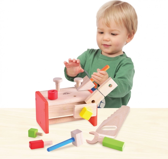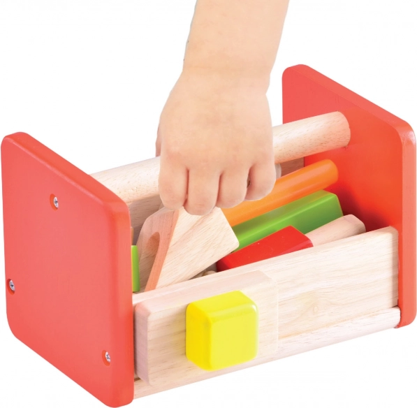 Il set è realizzato in robusto legno massello e legno-plastica, garantendo lunga durata e sicurezza durante il gioco. L’attraente combinazione di look naturale e colori vivaci cattura l’attenzione di ogni bambino. I bambini imparano a organizzare gli strumenti in base alla funzione e, grazie alla struttura compatta, risparmiano anche spazio.