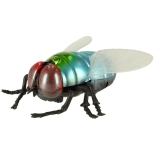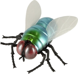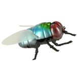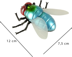 Il corpo metallico blu‑verde, gli occhi rossi e le ali trasparenti rendono il giocattolo una fedele imitazione di una mosca – perfetta per scherzi e per la didattica.