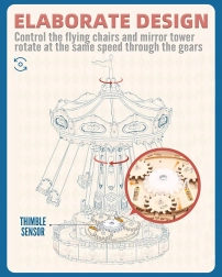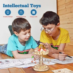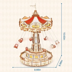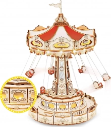 Questo puzzle 3D a carillon rappresenta un’elegante giostra a catene con ricche decorazioni in tonalità naturali e colorate. Una volta assemblata, la giostra gira grazie al motore, si illumina con LED e riproduce la melodia Merry Go Round, creando un’atmosfera nostalgica e romantica. Il kit arriva smontato con istruzioni dettagliate: ideale per un progetto creativo del weekend.