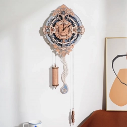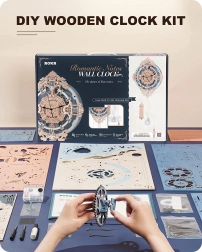 Questo modello DIY unisce esperienza rilassante di assemblaggio e funzione pratica. Una volta montato, l’orologio da parete diventa un’elegante protagonista della stanza – con numeri romani, ornamenti decorativi e ingranaggi a vista che ne sottolineano il carattere vintage.