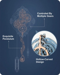 Godetevi il ticchettio rilassante e il movimento fluido del pendolo. Il design aperto con ingranaggi in vista esalta la bellezza meccanica dell’orologio e valorizza lo stile vintage degli interni.