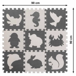 Tappetino puzzle educativo in schiuma per bambini con animaletti, grigio 85 × 85 cm, 9 pezzi