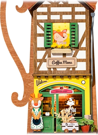 La confezione include tutto il necessario per il montaggio, compresi pezzi in legno, decorazioni, colori, colla, pennello e pinzetta. L’illuminazione è facile da impostare e da mettere in funzione con un interruttore. Batterie ministilo (2xAAA) non incluse, fornito con istruzioni dettagliate.