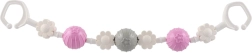 La coppia di clip robuste alle estremità permette un montaggio rapido su passeggino o culla e assicura una posizione stabile del giocattolo anche durante la marcia.