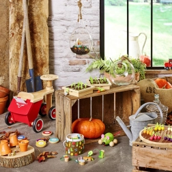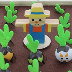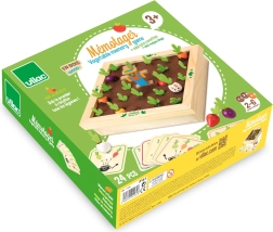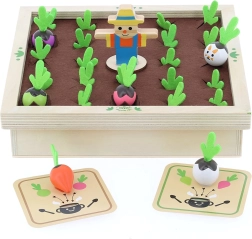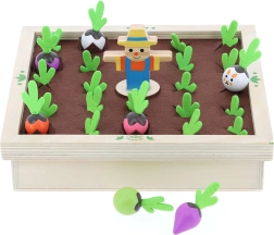 Scoprite la magia dell’orto a tavola in famiglia. Questo bellissimo gioco in legno con elementi in feltro porta pedine colorate a forma di verdura e carte ricetta, grazie alle quali i bambini imparano a riconoscere forme, colori e relazioni logiche. Giocate al classico memory oppure cucinate insieme la zuppa seguendo le ricette – sempre con un pizzico di suspense: comparirà il monello coniglietto?