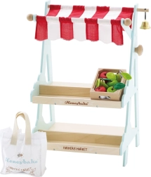 Le Toy Van Bancarella Honeybee è un prodotto popolare del marchio Le Toy Van, noto per il suo design premiato e la qualità. Questa bancarella è dotata di un baldacchino a strisce rosse e bianche, un campanello e cassette di legno con frutta. Ispira i bambini ai giochi di ruolo, che sviluppano le loro capacità sociali e creatività.