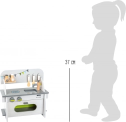 Questa cucina giocattolo elegante e resistente in formato compatto è ideale per camerette più piccole. Offre elementi realistici che favoriscono creatività, motricità fine e giochi di ruolo. Le manopole girevoli emettono un piacevole clic durante la regolazione e lo sportello del forno magnetico si apre e si chiude con facilità.