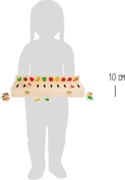 Questo inserto motorico in legno di alta qualità di Small Foot è un’ottima scelta per lo sviluppo della motricità fine, della logica e del vocabolario dei bambini. I bambini abbinano i tasselli quadrati con motivi alle aperture corrette sulle schede a scorrimento e, in modo ludico, imparano a riconoscere colori, forme e oggetti della vita quotidiana.