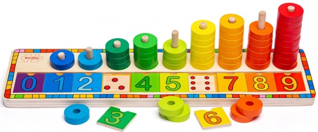 Le sequenze numeriche 0–9 e gli anelli da impilare guidano i bambini alla comprensione naturale della quantità, dell’ordine e delle basi del conteggio.