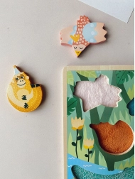 Sotto ogni pezzo-animale si nasconde una superficie tattile diversa. I bambini sviluppano naturalmente il tatto, la curiosità e la percezione delle differenze.