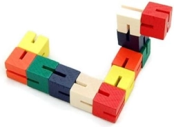 Puzzle di legno colorato a forma di serpente offre innumerevoli modi per i bambini di esplorare la propria creatività. Ruotando e ribaltando i vari segmenti sviluppano destrezza e abilità motorie fini. Il giocattolo è ideale anche per i viaggi, grazie alle sue dimensioni tascabili i bambini possono portarlo sempre con sé. I blocchi di legno sono saldamente uniti con un elastico, garantendo resistenza e sicurezza.