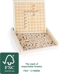 Gioco in legno con lettere Small Foot è ideale per i bambini che vogliono esercitarsi nel vocabolario e nell'ortografia. Realizzata al 100% in legno certificato FSC®, offre un gioco divertente ed educativo basato sul principio del noto gioco Scrabble.