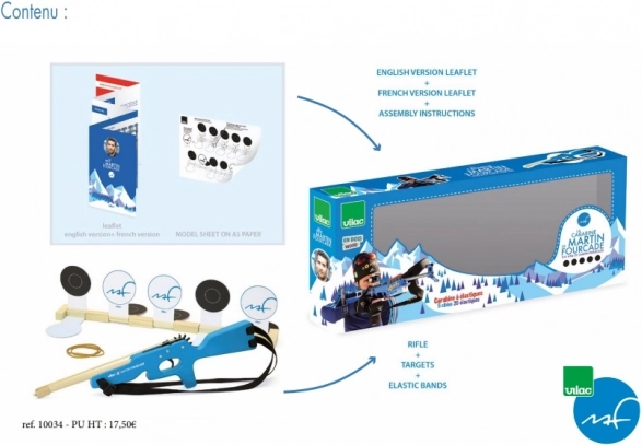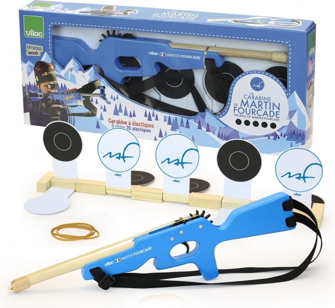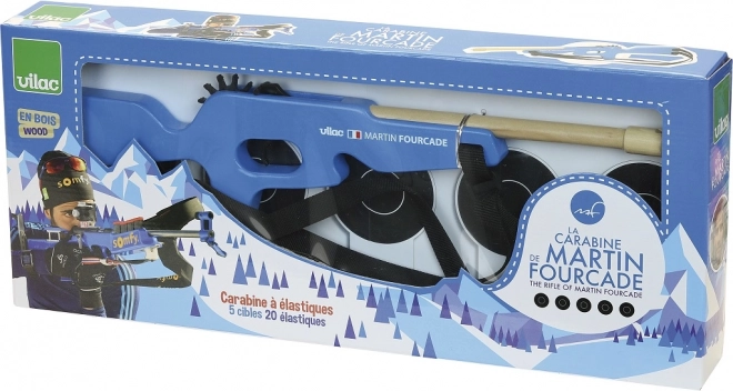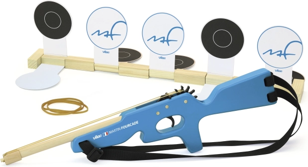 Scopri la magia del biathlon con il fucile da biathlon di Martin Fourcade. Questo giocattolo è progettato per entusiasmare i giovani sportivi che non temono freddo e neve. Il biathlon è popolare in Italia tanto quanto l'hockey e lo sci, e questo piccolo fucile offre un'opportunità unica di pratica per i giovani fan di questo sport.