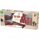 Diventa un piccolo cowboy con questo elegante fucile in legno VILAC! Il set include una carabina a elastici, 20 elastici e 6 mini lattine per un tiro divertente e sicuro. Un ottimo gioco di precisione che sviluppa la motricità e lo spirito competitivo per bambini dai 5 anni in su.