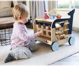 Sviluppate le abilità motorie del vostro bambino con il girello in legno a forma di balena. Questo girello a forma di balena offre gioco e apprendimento a tema mondo marino.