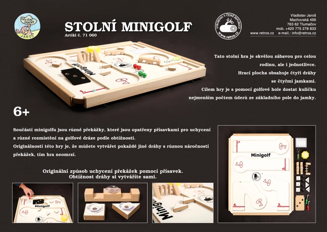 Scopri un divertimento che non stanca mai: minigolf da tavolo con ostacoli posizionabili liberamente su quattro piste. Grazie al fissaggio con ventose puoi creare un percorso sempre diverso e più o meno impegnativo. Perfetto per il divertimento in casa, ma anche per doposcuola e circoli. Lavorazione di qualità e prodotto nella Repubblica Ceca.