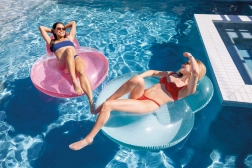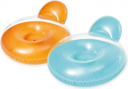 Goditi momenti di relax con i nostri anelli gonfiabili con schienale, disponibili nei colori arancione e turchese.