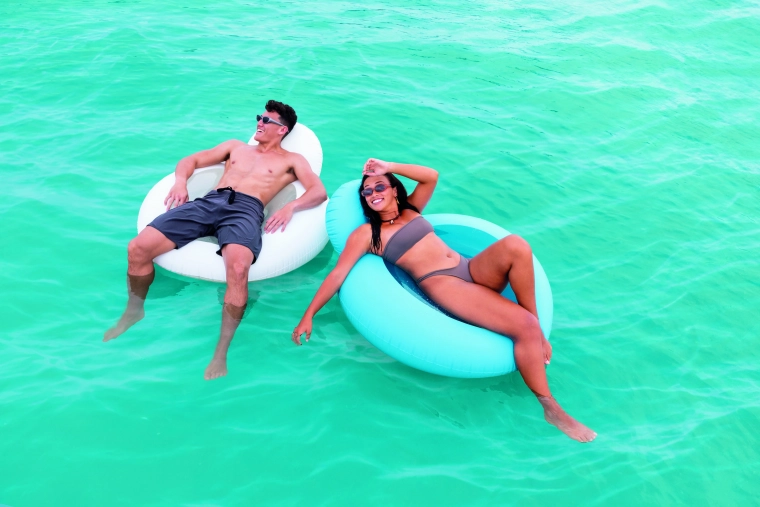 Il materassino misura 137 x 122 cm ed è dotato di un fondo chiuso per maggiore sicurezza e comfort. È ideale per rilassarsi sia in acqua dolce che salata.