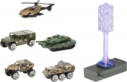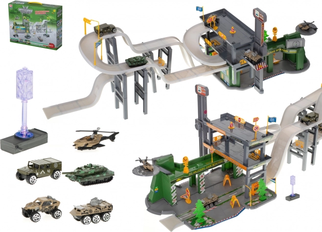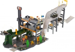 Al centro si trova una struttura su tre livelli - un parcheggio collegato da strade ad altri livelli. Da qui puoi salire direttamente sulla pista alta. Metti la tua auto e vedrai come scende velocemente! Al piano superiore c'è anche una piattaforma d'atterraggio per elicotteri. Al piano terra si trova una stazione di rifornimento con pompe di benzina, dove i veicoli possono fare il pieno prima di una nuova entusiasmante avventura! Nel set troverai 4 veicoli realizzati con molta attenzione ai dettagli: fuoristrada, camion 4x4, trasportatore da combattimento, carro armato blindato, elicottero! Ogni veicolo ha ruote mobili e una colorazione militare perfettamente riprodotta. L'elicottero ha pale mobili rimovibili. Tutti i mezzi sono nelle tonalità mimetiche, come si addice ai veicoli militari. Con un set del genere, ogni operazione militare è destinata al successo! Nell'insieme troverete molti elementi di infrastruttura fuoristrada, come piante, segnali, semafori, segnaletica o barriere. Il set include anche un ampio foglio di adesivi che darà vita alla costruzione. Questo set è una grande opportunità per trascorrere del tempo insieme a coetanei e adulti. Questo giocattolo permette di creare, scoprire, sviluppare l'immaginazione e ha un effetto positivo sulla motricità fine del tuo bambino.