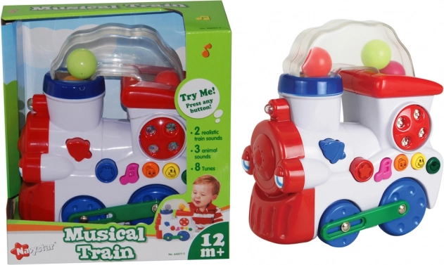 Questo giocoso trenino musicale offre ai bambini tanti stimoli e divertimento. Il semplice controllo tramite il pulsante a forma di stellina avvia la corsa del trenino, durante la quale dal camino volano palloncini. I suoni realistici del treno, le luci colorate e le vivaci melodie sviluppano naturalmente udito, vista e motricità.