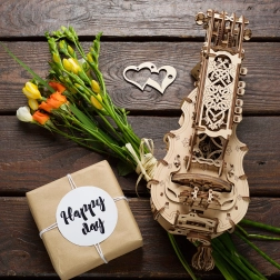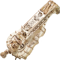 Questo eccezionale kit in legno unisce il divertimento del modellismo all’esperienza musicale. Ispirata all’arte medievale, la ghironda Ugears offre il moto di un ingranaggio planetario, ornamenti decorativi e soprattutto una reale suonabilità: lo strumento si attiva girando la manovella, si accorda con i piroli dotati di ingranaggi di riduzione e l’altezza del suono si controlla con sei tasti.