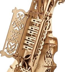 I 292 pezzi tagliati al laser in modo preciso in compensato di qualità si incastrano senza colla. Ornamenti decorativi e ingranaggi a vista la rendono una decorazione accattivante.