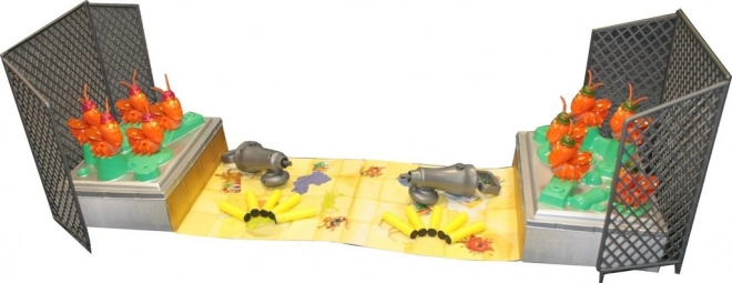 - 10 scarafaggi (teste e corpi), tabellone, 2 basi, 2 grandi barriere frontali, 4 barriere laterali più piccole, 2 pistole anti-insetti, 10 dardi, istruzioni