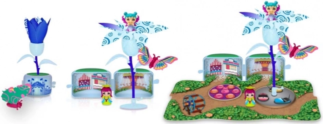 - Fiore magico con vaso, farfallina colorata, 2 adorabili personaggi, giardinetto ritagliabile dal blister