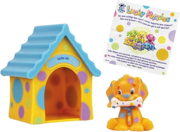 Porta a casa una simpatica cuccia per il cucciolo della collezione LUCKY PUPPIES. Ogni cagnolino ha un’espressione unica – dal Tranquillone al Sorridente – e arriva in una delle sei posizioni differenti. Il set è perfetto per il gioco individuale o per ampliare tutta la cagnolina famiglia.