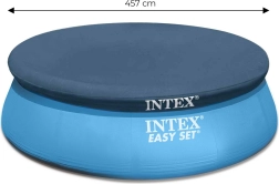 Pratico telo di copertura INTEX per piscine fuori terra rotonde con diametro di 457 cm: protegge l’acqua da foglie, insetti e impurità. Grazie ai fori di drenaggio, l’acqua non si accumula in superficie e il telo aiuta a mantenere una temperatura dell’acqua più stabile. È realizzato in materiale resistente, ha un sormonto di 30 cm per un fissaggio sicuro ed è compatibile con piscine di diverse marche con larghezza bordo 421 cm.