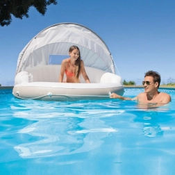 L’isola gonfiabile INTEX offre il luogo perfetto per il relax in acqua. Il tettuccio removibile e regolabile assicura una piacevole ombra quando il sole picchia e si rimuove facilmente per prendere il sole. L’ampia superficie e gli schienali sagomati garantiscono comfort per lunghe ore di riposo.