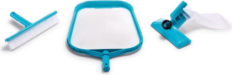 Mantieni l'acqua della tua piscina igienicamente pulita con il pratico set INTEX in 3 pezzi. Grazie alla combinazione intelligente di spazzola, retino e aspiratore collegabile al tubo da giardino, rimuovi facilmente i depositi dal fondo, le foglie trascinate dall'acqua e le impurità fini dalle pareti. Maneggevolezza semplice e materiali resistenti garantiscono lunga durata e uso quotidiano confortevole.