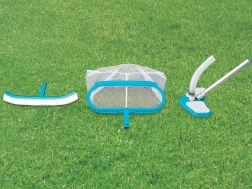 Il set include una rete, un aspirapolvere e una spazzola che coprono tutte le esigenze di pulizia della piscina.