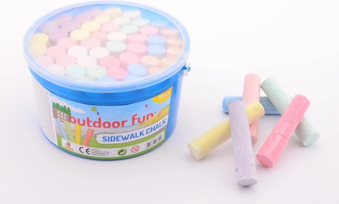 Grande set di gessetti da esterno in secchiello. Il set contiene 50 pezzi di gessetti da esterno in vari colori.