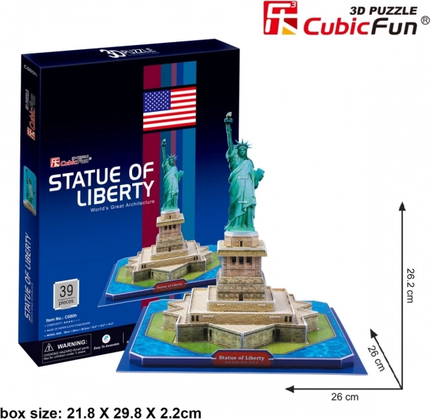 Scopri il fascino del monumento iconico con il puzzle 3D CubicFun Statua della Libertà con 39 pezzi. Il set della serie World's Great Architecture è realizzato in schiuma speciale spessa ca. 3 mm rivestita con carta stampata laminata e si assembla senza colla e forbici. Ideale come divertimento per tutta la famiglia e come elegante decorazione d’interni.