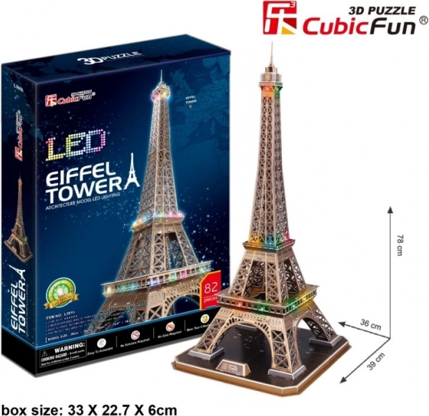 Costruisci a casa tua l'iconica Torre Eiffel come puzzle 3D della serie CUBICFUN con illuminazione LED. I pezzi in schiuma di qualità rivestita di carta si assemblano facilmente senza colla né forbici, e il modello finale spicca come decorazione di stile con un'imponente altezza di 78 cm.