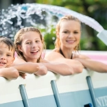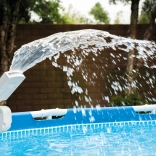 L’installazione richiede un minuto: fissi la fontana alla parete della piscina senza forare e senza attrezzi. Il fissaggio universale e l’adattatore incluso consentono un facile collegamento a tubi da 32/38 mm e a sistemi di filtrazione con portata di 3.785–12.112 l/h. Il prodotto è conforme alle norme europee di sicurezza.