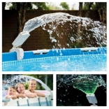 Goditi i bagni serali con un incantevole effetto luminoso. La fontana INTEX crea un getto d’acqua decorativo con illuminazione LED in quattro colori (bianco, rosso, blu, verde), migliora la circolazione e l’ossigenazione dell’acqua e supporta così l’efficacia dei prodotti chimici per piscina. Grazie al generatore idroelettrico non necessita di alimentazione esterna – la luce si accende automaticamente con il flusso dell’acqua.