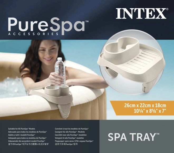 Il pratico portabevande per le vasche idromassaggio INTEX trasforma la tua spa domestica in un confortevole SPA. Si aggancia facilmente al bordo superiore dell’idromassaggio e offre un fissaggio stabile e resistente, spazio per due bevande e un piccolo ripiano per oggetti. Grazie ai bordini sagomati tutto rimane al suo posto e un’eventuale bevanda rovesciata non defluisce nell’acqua.