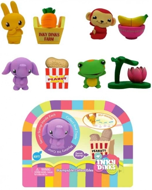 INKY DINKS sono graziosi timbri per bambini con cui i piccoli si divertiranno per ore a creare. Nella confezione 2 pack trovi due personaggi Stampini e i loro accessori. Motivi come farfalla, cuoricino o fiorellino si affiancano ad altri timbri a tema e con animaletti. Il colore degli Stampini suggerisce quanto siano rari, rendendoli un gioco da collezione divertente.