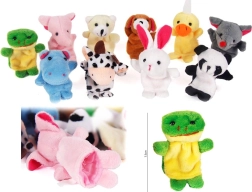 Nella confezione trovi gli animaletti preferiti: ippopotamo, topolino, cagnolino, orsetto, ranocchia, elefantino, mucca, panda, coniglietto e paperella. Grazie al formato compatto si infilano facilmente sul dito e sono adatti a viaggi, asilo e casa.