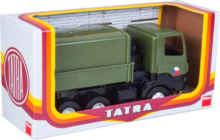 Il Tatra Phoenix in versione militare è dotato di un cassone chiuso che può anche essere vuoto. Grazie al cassone ribaltabile, i bambini simulano facilmente il carico e lo scarico dei materiali. Questo modello è realizzato in plastiche sicure senza ftalati, garantendo un gioco sicuro. Il Tatra è adatto dai 1 anni ed è orgogliosamente prodotto dall'azienda ceca Dino Toys.