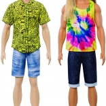 La bambola Ken è vestita secondo le ultime tendenze della moda e propone combinazioni di abbigliamento vivaci.