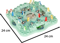 La plancia quadrata entra su qualsiasi tavolo ed è ideale anche in viaggio. Pedine colorate a forma di pinguino per 2–4 giocatori.