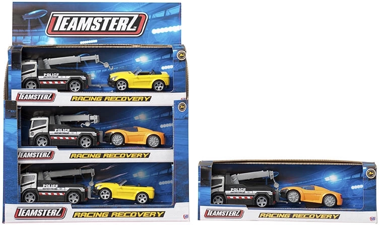 Presentiamo il set di gioco di Teamsterz che combina carro attrezzi e auto sportiva. I bambini possono creare innumerevoli scenari e situazioni, stimolando così la loro creatività e abilità motorie.