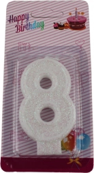 Elegante candela di compleanno a forma di numero 9 con delicati glitter, la scelta perfetta per il momento speciale del soffio delle candeline. Grazie al design bianco pulito e ai glitter, si adatta a vari stili di torte e decorazioni.