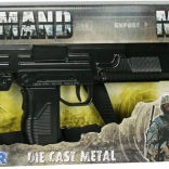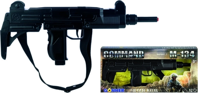 Realistica mitraglietta della polizia in metallo a capsule, offre fino a 12 colpi per un gioco divertente e sicuro. Si distingue per la robusta struttura in metallo, il raffinato design nero e le dimensioni comode per le mani dei bambini. Prodotto in Spagna. Età 3+ .