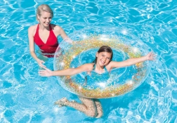 Il salvagente gonfiabile INTEX Sparkling Glitter è la scelta ideale per piscina, lago e mare. Grazie al materiale trasparente e ai glitter interni crea sulla superficie dell’acqua un effetto scintillante che dona al tuo relax uno stile unico. La struttura robusta in vinile massiccio assicura lunga durata e comfort d’uso.