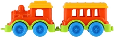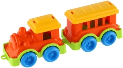 Trenino colorato in plastica con carrozza per bambini