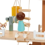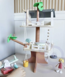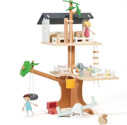 La confezione include 31 elementi, tra cui 2 figurine di bambini, 2 animaletti e accessori come altalena, altalena–pneumatico, altalena di equilibrio, letto, tavolo, sedie e scrigno del tesoro. Il legno naturale finemente lavorato con colori tenui è resistente e piacevole al tatto.